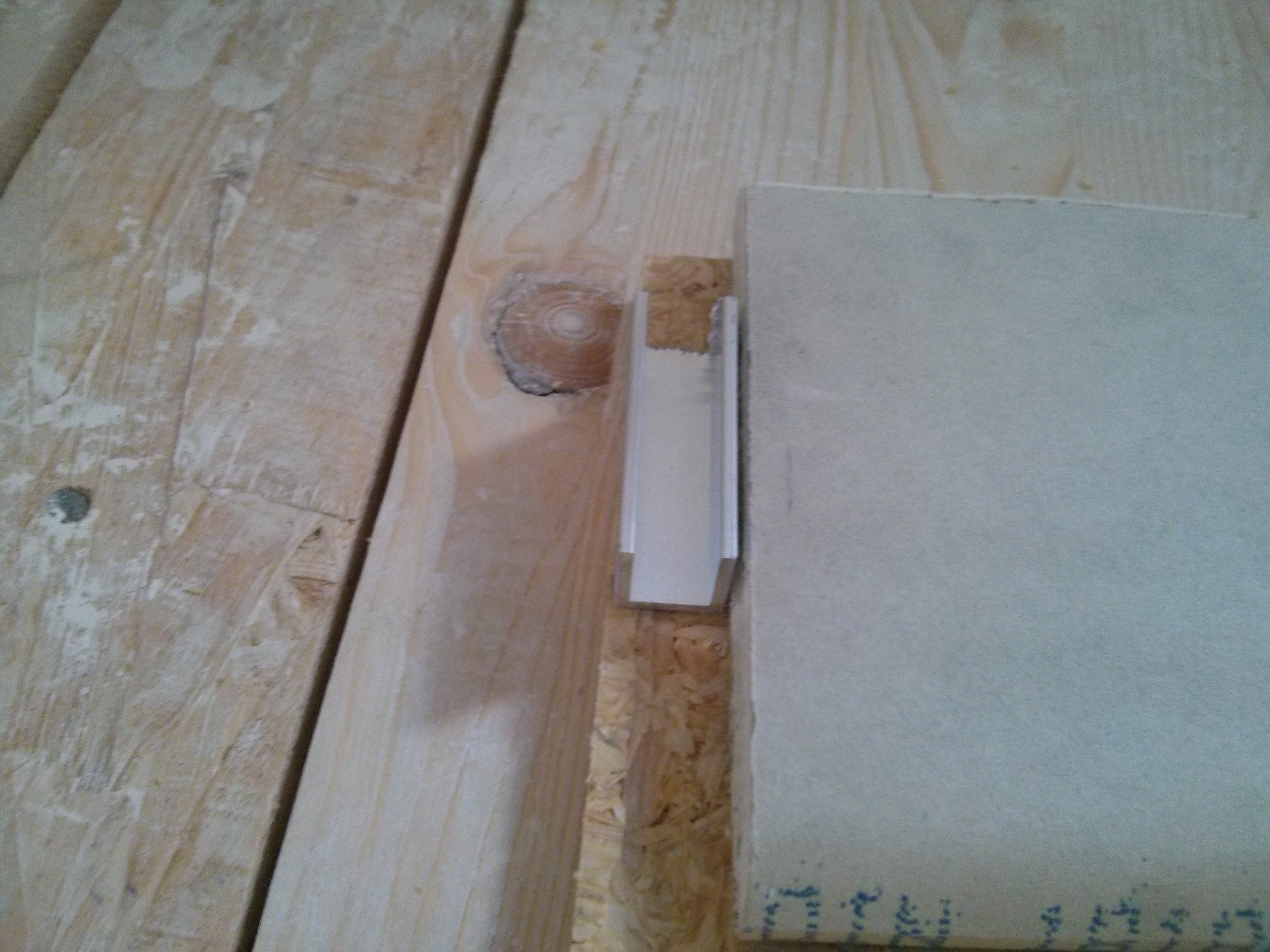 Ein 15mm Alu-U-Profil mit 2mm Wandstärke. Damit das später bündig mit der Gipskartonplatte sitzt, mussten wir die OSB-Platte mit einer Oberfräse etwas vertiefen: